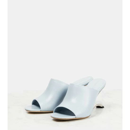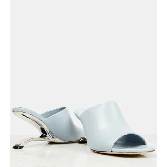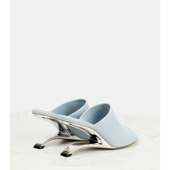 The Arc mules from Alexander McQueen are made in Italy from leather with round open-toe uppers. They are set atop structural cantilever heels in a silver-finish.