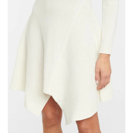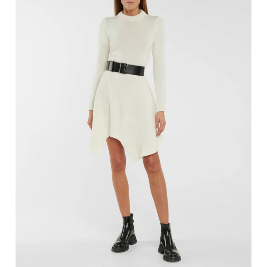 Off-kilter silhouettes are an Alexander McQueen specialty, as this elegant white minidress demonstrates with its flared, asymmetric skirt. It’s made in Italy from pure cashmere, with ribbed panels on the skirt adding a tactile twist. Consider it a high-fashion take on the classic sweater dress.
