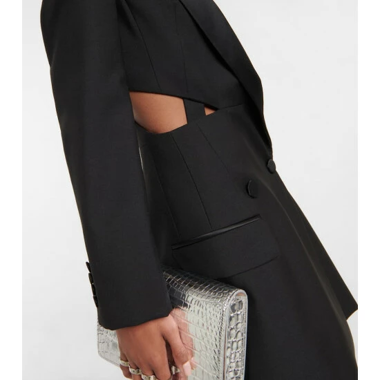 Made from a mohair and wool blend and taking the form of a blazer, this blazer from Alexander McQueen has a slit that runs from the waist to the back of one shoulder.