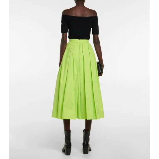Embrace Alexander McQueen’s theatrical spirit with this voluminous midi skirt. Made from vibrant cotton poplin, it has an A-line silhouette with a full, flared skirt.