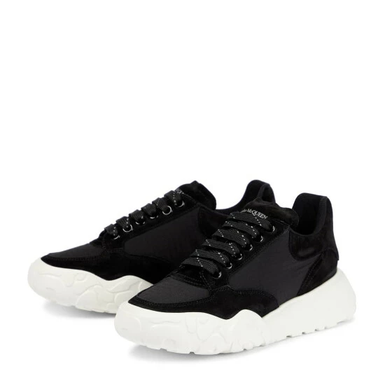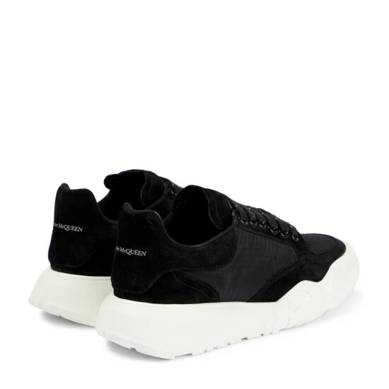 The Court sneakers from Alexander McQueen have as much a right to front-row seats as any well-heeled shoe out there. Made from black canvas with suede trims and lugged soles, they have high heel counters that help to pull them on and off.