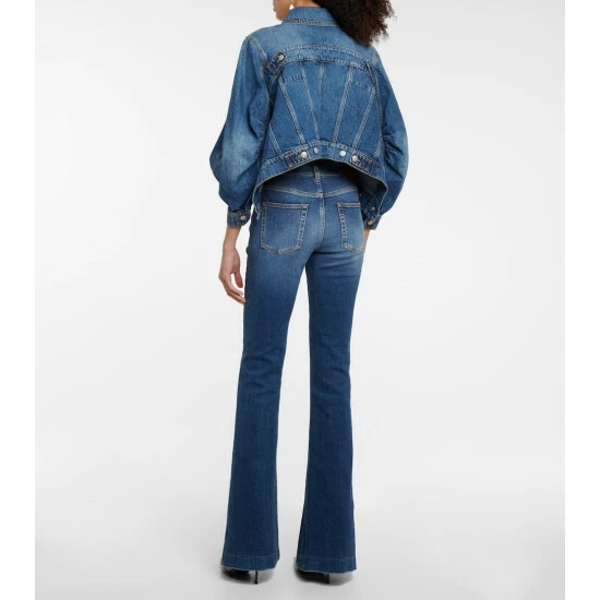 Alexander McQueen updates the denim jacket with a cropped silhouette with a modern edge. Made from non-stretch cotton, this piece has voluminous sleeves and a rounded back.