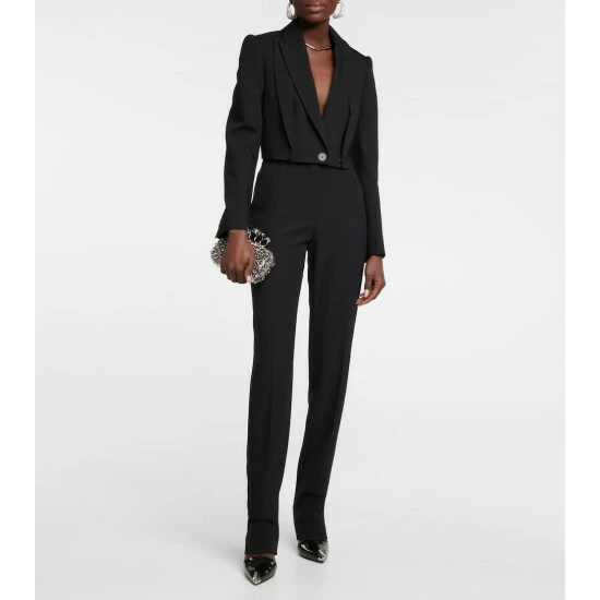 A legacy of the founder’s Savile Row training, tailoring lies at the heart of Alexander McQueen. This blazer is made in Italy from pure wool to a cropped silhouette with peak lapels and buttoned cuffs.