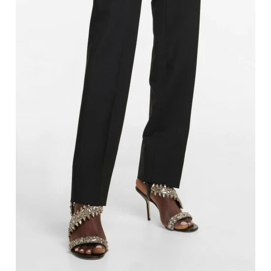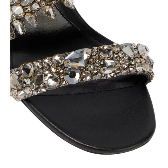 Instant glamour comes in the form of these sandals from Alexander McQueen. Made from leather and set atop high stiletto heels, they’re encrusted with round, irregular and teardrop-cut crystals.