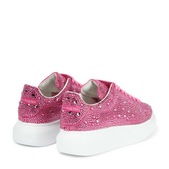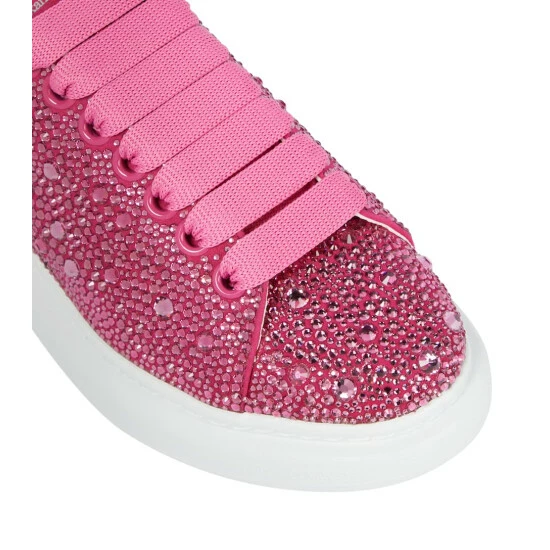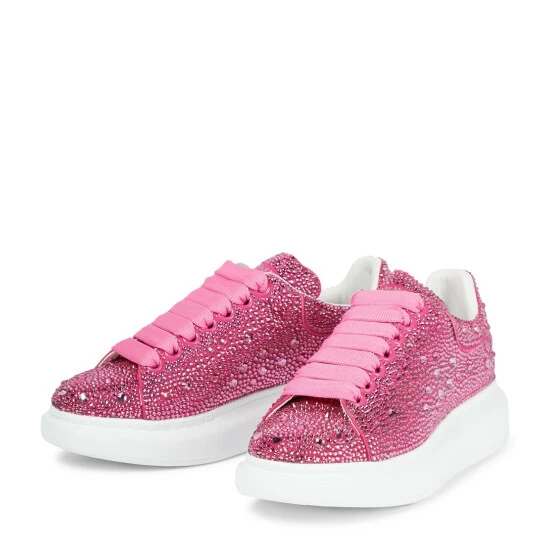 Alexander McQueen takes a maximalist approach to footwear with these crystal-embellished sneakers in hot pink. This low-top silhouette is made from leather and set on white platform soles for a subtle elevation.