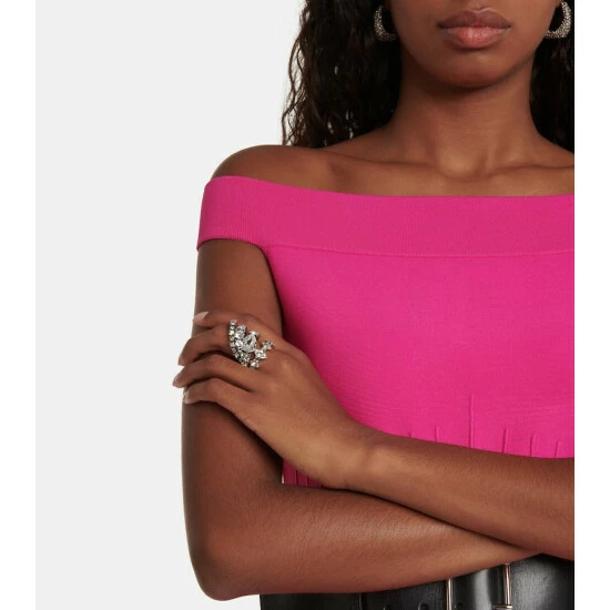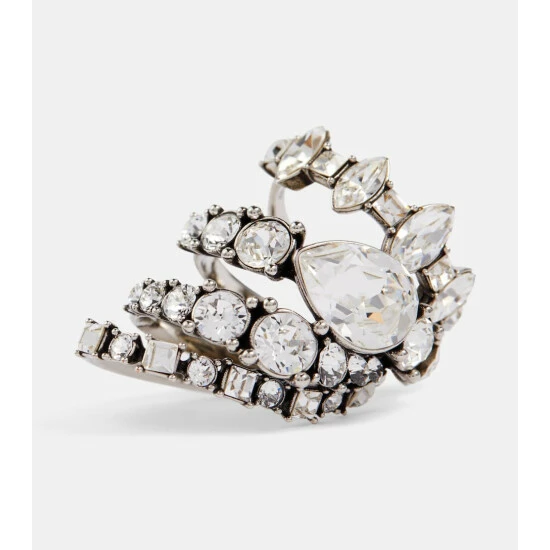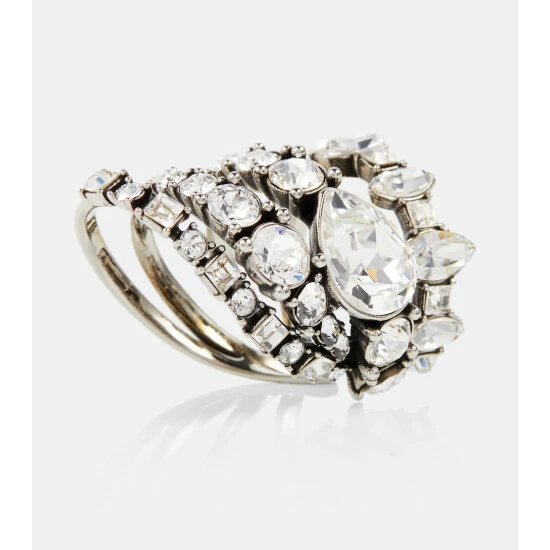This ring from Alexander McQueen is made from silver-tone brass with an antique finish. The stacked design is embellished with crystals.