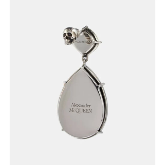 These earrings from Alexander McQueen are made in Italy with crystals prong-set in brass in a pendant design. They feature post-back fastening with the house’s signature skull detail at the back.