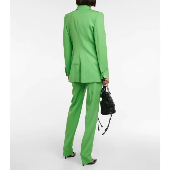 Introduce color to your tailoring looks with this bright blazer from Alexander McQueen. It’s made from a woolen suiting fabric, it has a double-breasted front framed with sharply peaked lapels and dotted with self-covered buttons.
