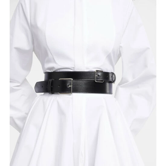 This double belt from Alexander McQueen is made from smooth leather. It comprises two strips in varying widths for a layered look and features silver-tone buckles.