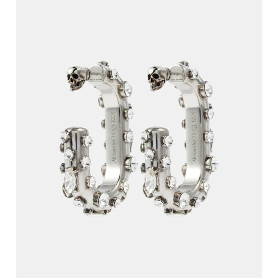Detailed with shimmering crystals, these earrings from Alexander McQueen have a hoop silhouette and are suitable for pierced ears.