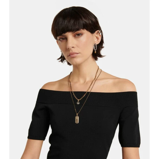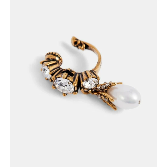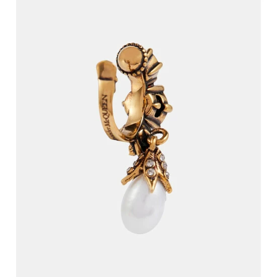 Opt for an opulent accessory with this single ear cuff from Alexander McQueen. The antiqued-golden brass design is dusted with crystals and features a Swarovski pearl drop.