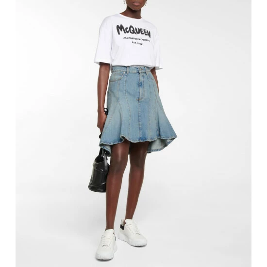 A paneled construction gives this mini skirt from Alexander McQueen its voluminous flared look. It’s made from stonewashed cotton denim to a flattering high-rise silhouette.