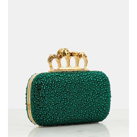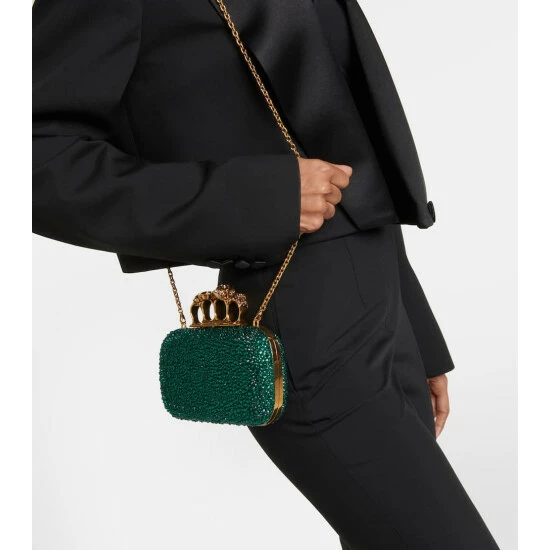 The Four Ring box clutch from Alexander McQueen will see you through any soirée. Made from crystal-dotted leather in emerald green, it has a knuckle-duster clasp that’s embellished with signature skulls and hand-applied Swarovski crystals.