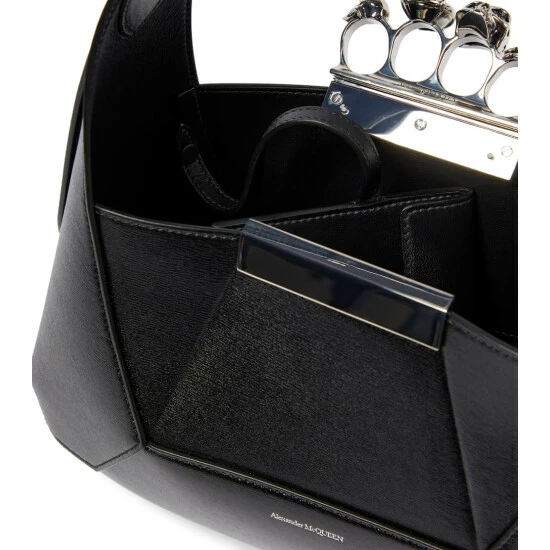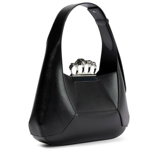 This leather shoulder bag from Alexander McQueen will add a uniquely modern twist to your accessories collection. This recognizable signature piece features four distinct rings at the clasp and a geometric design.