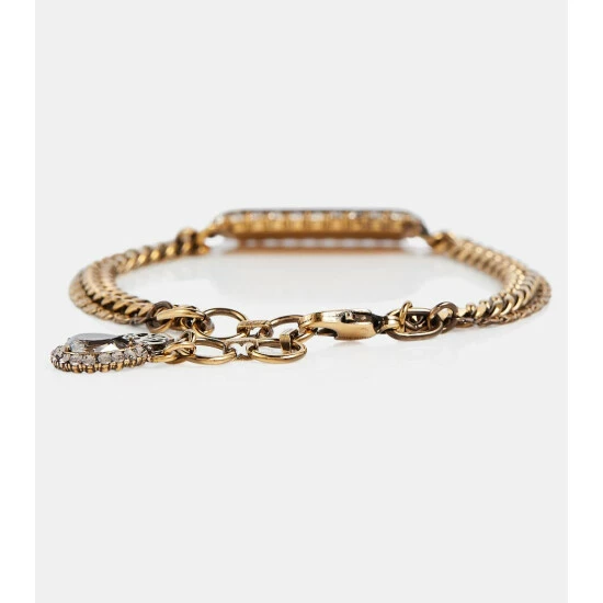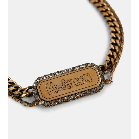 We love Alexander McQueen’s punk-inspired jewelry, such as the Graffiti chain bracelet. It’s designed with a double chain, crystal embellishments, and the label’s new Graffiti logo embossed on the tag.