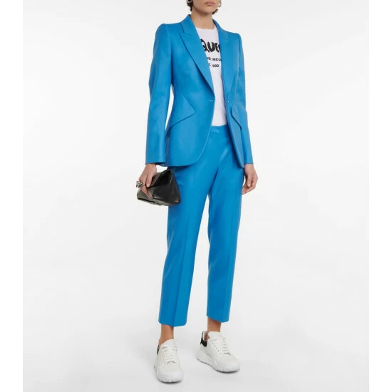 These tailored pants from Alexander McQueen are sure to brighten your workwear edit. They’re cut from blue wool twill to a high-rise silhouette with straight, cropped legs.