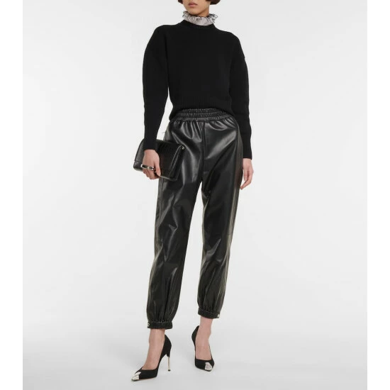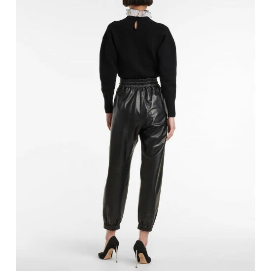 These black pants from Alexander McQueen are a luxurious take on a loungewear staple. Made from soft lambskin – one of the most supple forms of leather – they have an elasticated waistband and cuffs. Dress yours up with point-toe pumps.