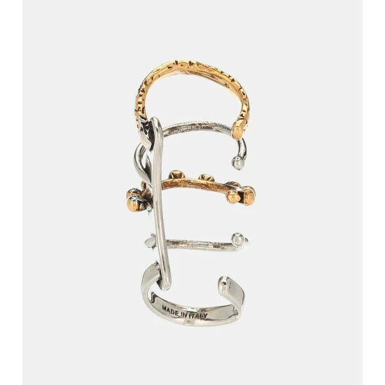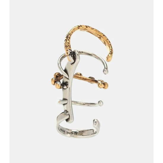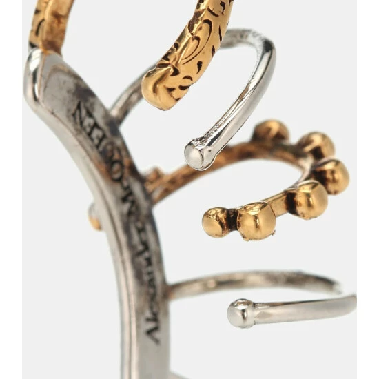 Alexander McQueen brings two dualities – punk and romance – together in this covetable ear cuff, which can be worn on both pierced and unpierced ears. Crafted in Italy from antiqued golden and silver-tone brass, the multi-hoop design features signature motifs of the brand, from studs to intricate engravings.