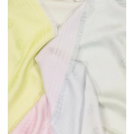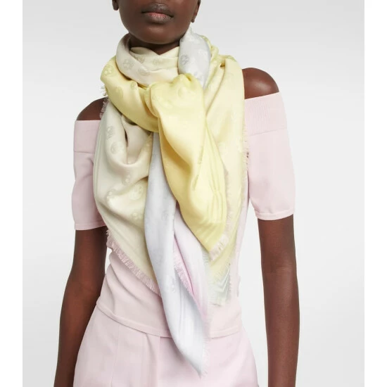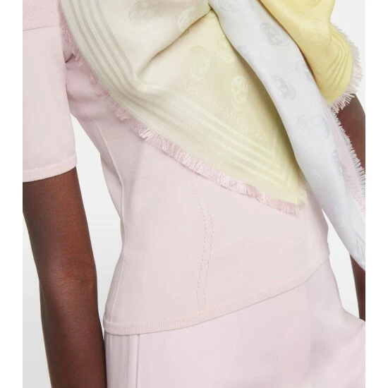 Made from a luxuriously warm blend of silk and wool, this jacquard scarf from Alexander McQueen features the brand-signature skull motif. Made in Italy, this design comes in a pale pink and blue gradient.