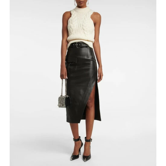 The Jewelled Satchel Mini crossbody bag from Alexander McQueen is encrusted with embellishments that nod to the label’s theatrical runway designs. Made from black leather, it’s covered in silver studs, spikes and crystals, and features a slot pocket for easy organization.
