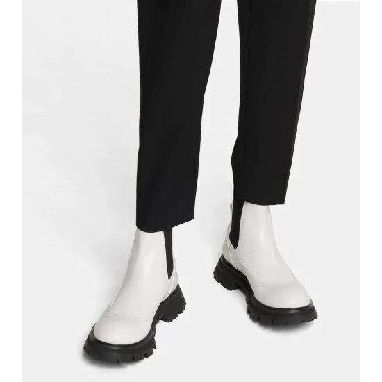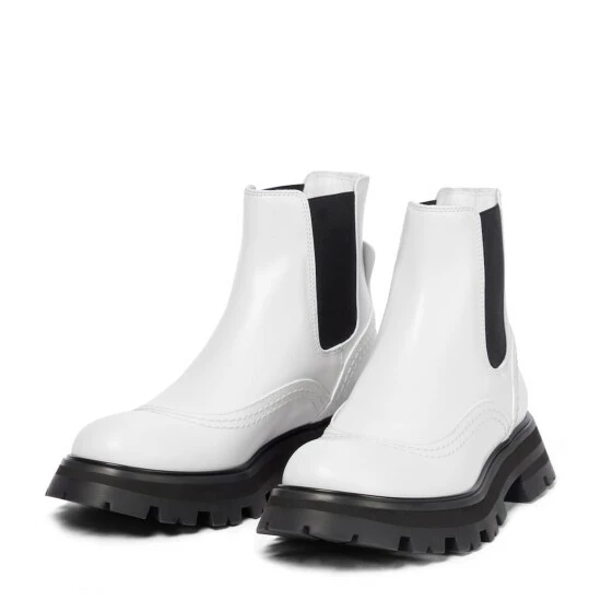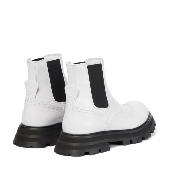 Alexander McQueen riffs on its British heritage with this attitude-rich take on classic Chelsea boots. The white leather pair is set on chunky cleated soles in contrasting black, and finished with matching stretch side inserts.