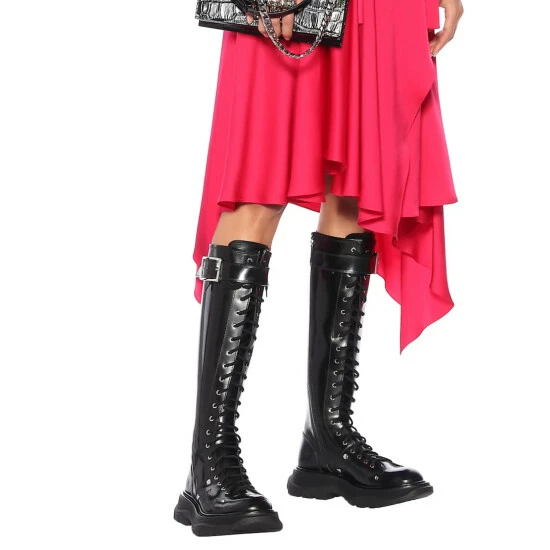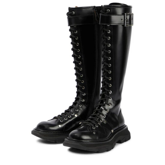 Alexander McQueen’s boots will toughen up any ensemble with their military-inspired design. They’ve been crafted in Italy from smooth calf leather and are punctuated with silver-tone eyelets that line the shaft. The chunky rubber soles ensure a confident stride wherever you’re heading.
