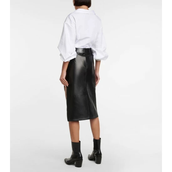 Embody Alexander McQueen’s gothic charm in your everyday edit with this midi skirt. Made from leather, it has a split hem with zipped details, and a chunky belt.