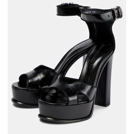 These leather sandals from Alexander McQueen are a tough-luxe take on the platform trend. Made from calfskin leather with grosgrain trims, they’re set on towering block heels.