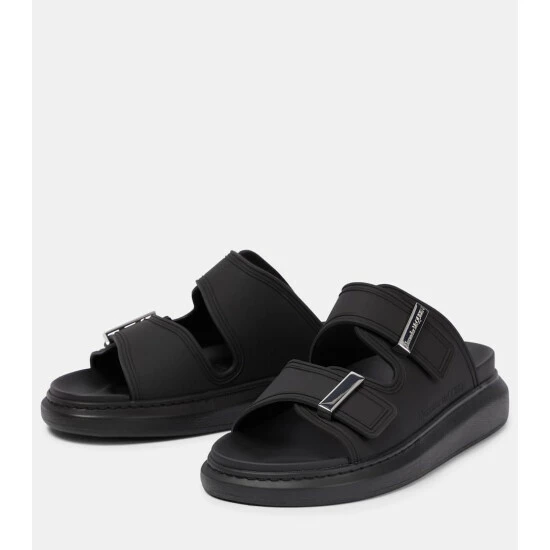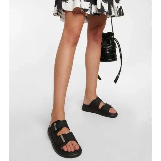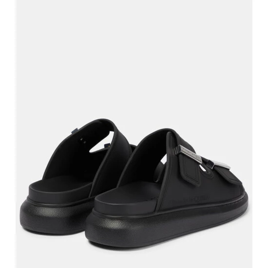 Whether bearing your toes or styled with socks, you’ll find endless opportunities to wear these black slides from Alexander McQueen. Made from leather, this design features a duo of straps with silver hardware.