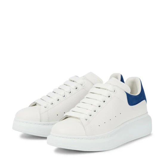 Alexander McQueen’s sneakers will add a sports-luxe finish to any daytime look. In white leather, this classic style is elevated with a chunky rubber sole that features a built-in wedge for height and comfort. A deep blue suede panel to the heel is printed with the designer’s logo in silver-tone for an instant dose of chic.