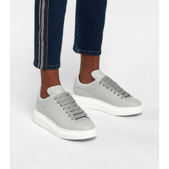 A trailblazer of the chunky sneakers trend, Alexander McQueen presents this label-signature style in light, heather gray leather. Originally designed in homage to lace-up Derby and creeper shoes – evident in the outsized rubber soles – the house’s London leanings are apparent in this pair.