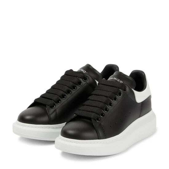 Alexander McQueen updates the sneakerhead trend with this monochrome pair. It’s made in Italy with black uppers and contrasting white flatform soles and suede heel counters.
