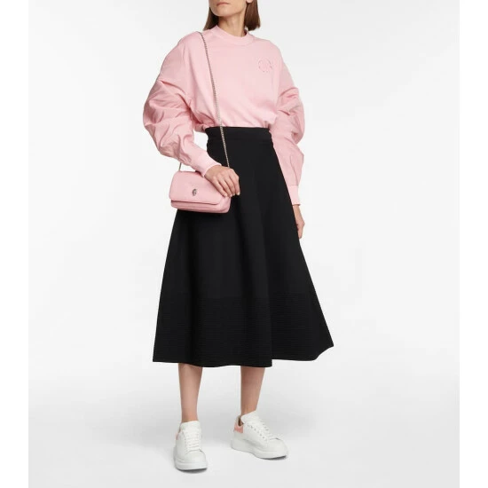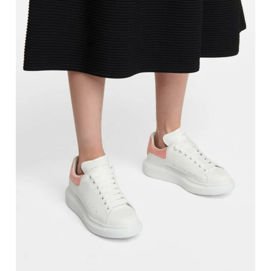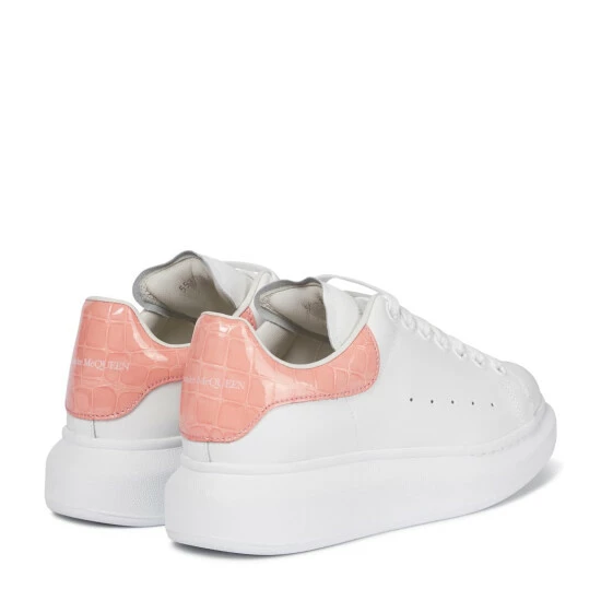 Alexander McQueen’s signature silhouette is reimagined for the season with pastel pink croc-effect leather heel panels courtest of this white pair. Made in Italy from smooth calf leather, the classic style is elevated by way of exaggerated rubber soles.