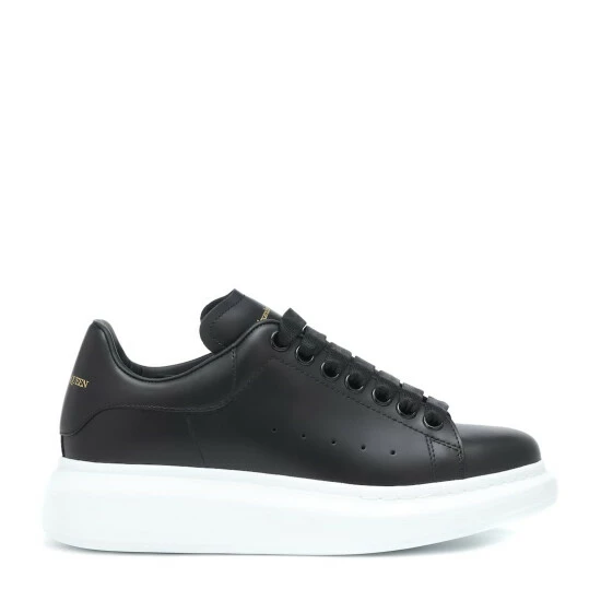 Alexander McQueen updates the sneakerhead trend with a monochrome black and white rendition. This style is made in Italy with a massive contrasting white sole and black-on-black upper which allows the gold-toned logo to be fully on display on the tongue. Easily pair yours with dresses and pants alike all season long.
