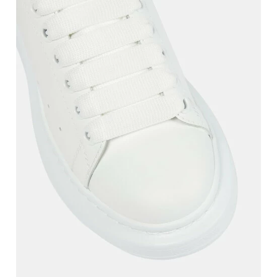 Strong fashion currency among the street style set, the signature platform sneaker from Alexander McQueen is updated with a shining metallic anthracite backstay. Crafted in Italy from optic white leather, it sits on a chunky rubber outsole – its defining feature. Easily pair yours with dresses and pants alike all season long.