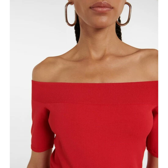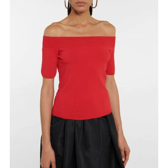 This red top from Alexander McQueen is an elevated essential for the everyday. It’s made from a compact knit fabric and has the most flattering off-shoulder neckline that’s finished with a ribbed trim.