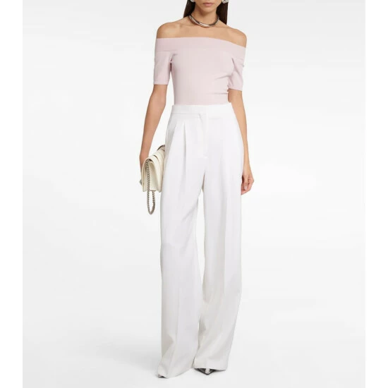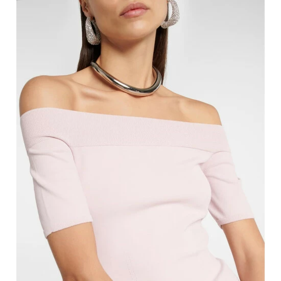 An off-shoulder design, this top from Alexander McQueen is made from a knit fabric with ribbed edges and perforated detailing.