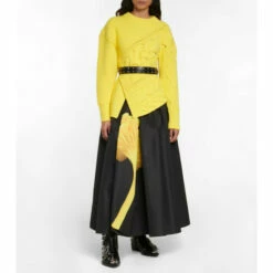 The Pieced and Patched sweater showcases Alexander McQueen’s focus on deconstructed aesthetics. This piece is made from wool in Italy and has a twisted profile with intricate braided detailing.
