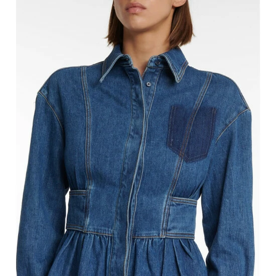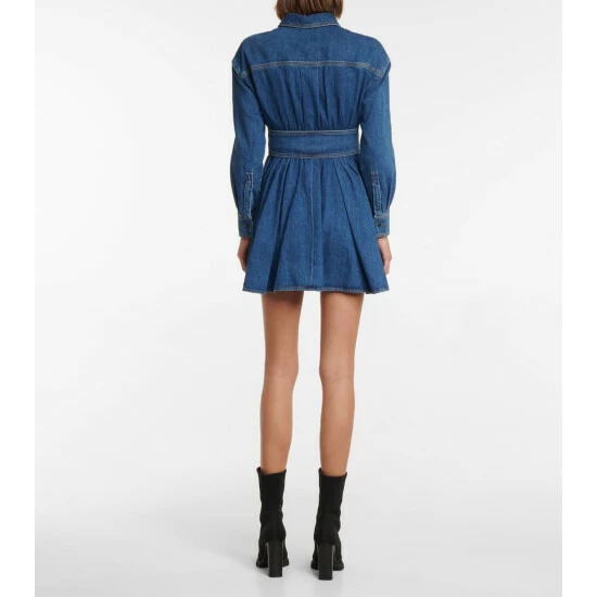 Refresh your denim edit with this minidress from Alexander McQueen. The shirt-style design has a trompe l’oeil chest pocket and in-set pleats below the wide waistband.