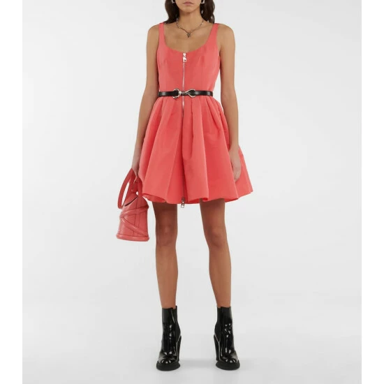 This polyfaille minidress from Alexander McQueen is prepped for party season. It has a low back, a flared box-pleated skirt and a two-way front zipper that subtly references the brand’s punk heritage.