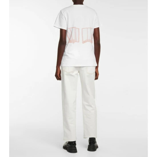 This white T-shirt from Alexander McQueen is printed with a rose-pink sheer bustier at the chest. Made from cotton jersey, it has a crewneck and short sleeves.