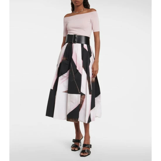 This skirt from Alexander McQueen is made in Italy from crisp cotton. It’s enriched with an abstract print and features pleats at the waist with a voluminous flared silhouette.