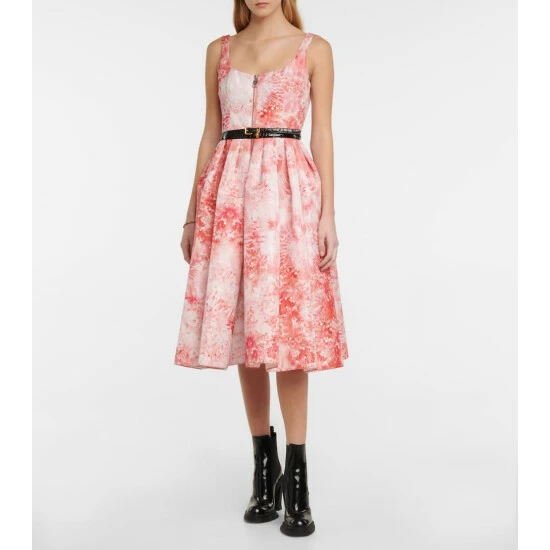 Alexander McQueen elevates this season’s signature silhouette with the addition of an artful coral print. Designed with a fitted bodice and a voluminous pleated skirt, it’s finished with a two-way zip.