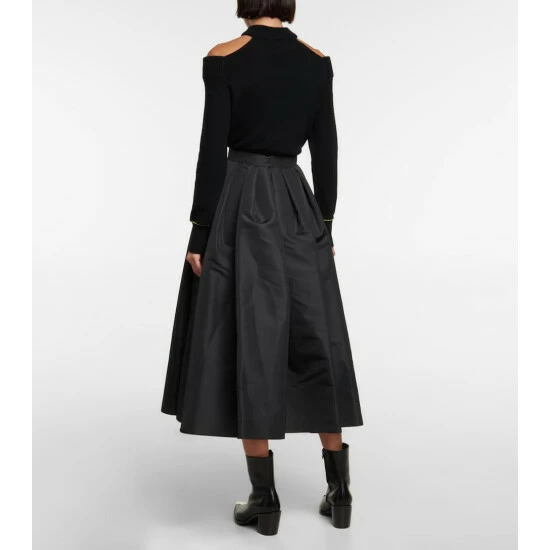 Embrace Alexander McQueen’s dramatic approach to fashion with this voluminous midi skirt. Made from satin, it has an A-line silhouette with and exaggerated flared skirt.