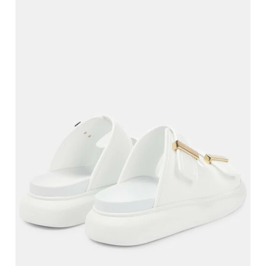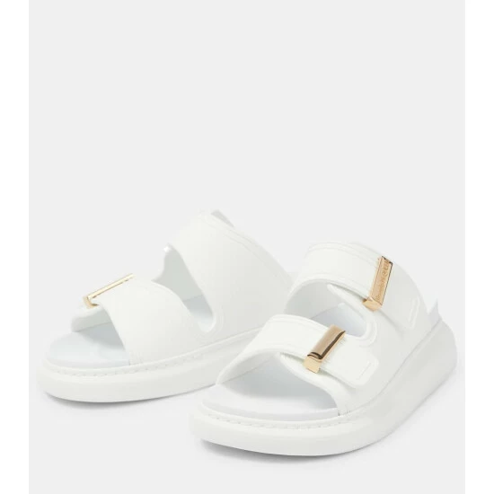 These rubber slides from Alexander McQueen feature logo-engraved, gold-toned buckles for a refined finish. The white pair has molded footbeds and raised soles that recall the label’s coveted sneakers.