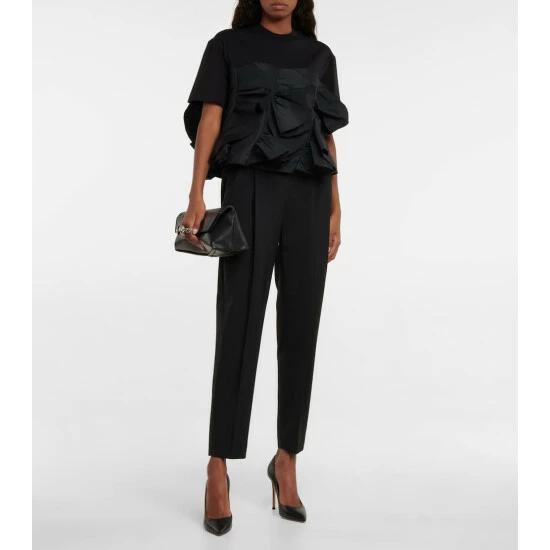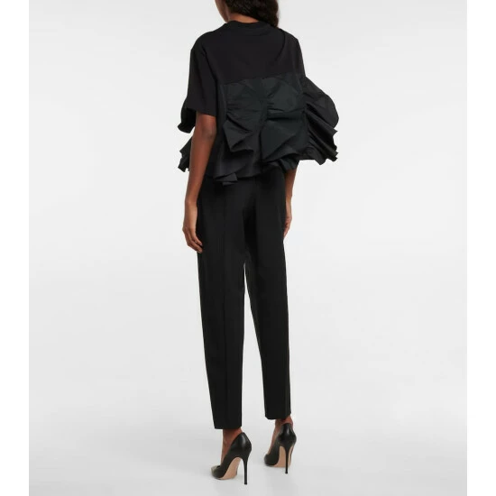 This Alexander McQueen t-shirt stays true to the British house’s design codes, as it’s made from a mix of casual cotton and elevated taffeta. The bottom half features voluminous ruffles, which are another brand signature.