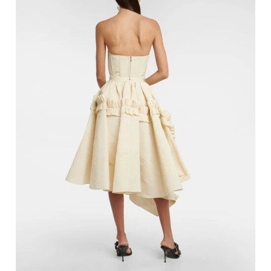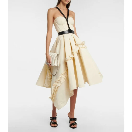 This gown from Alexander McQueen is a red-carpet showstopper. The design is made from a lustrous faille with a corseted bodice and asymmetrical ruffles that make the skirt look like a contemporary bustle.