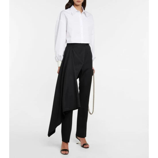 Featuring an asymmetrical sculptural element, these pants from Alexander McQueen are sure to make a statement. They’re made from pure wool and have a slim fit.