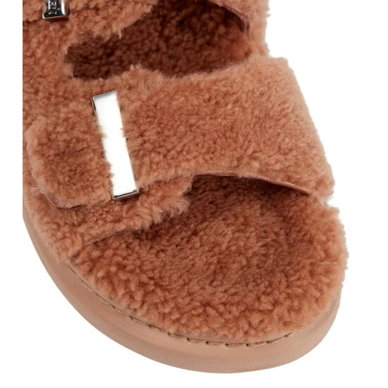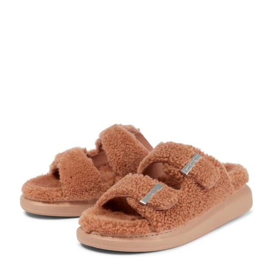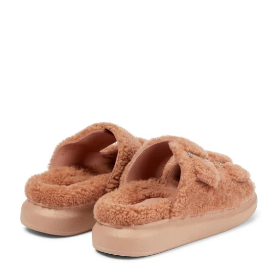 Alexander McQueen takes trendy slides into the colder season with this pink-hued shearling pair. Set on heavy rubber soles, this easy slip-on style features a duo-strap design with silver-toned branded hardware.