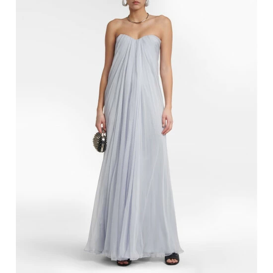 Make an unforgettable entrance at your next event in this Alexander McQueen gown. Shaped with a romantic sweetheart neckline, it’s made from layers of organically cultivated silk chiffon with an elegant drape detail at the cinched back.
